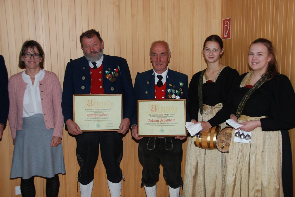 Johann Schallhart wurde für 55 Jahre Mitgliedschaft die Andreas Hofer Medaille mit Jahreskranz und eine Urkunde überreicht.